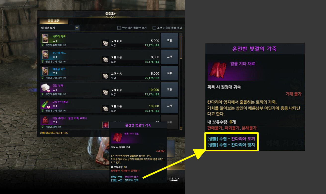 획득처를 보니 [생활] 수렵 - 칸다리아 토끼/칸다리아 영지라고 적혀있습니다.