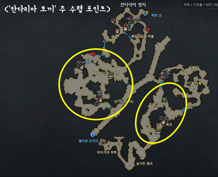 '칸다리아 토끼'는 칸다리아 영지의 채집물/채광물에 숨어있어요.