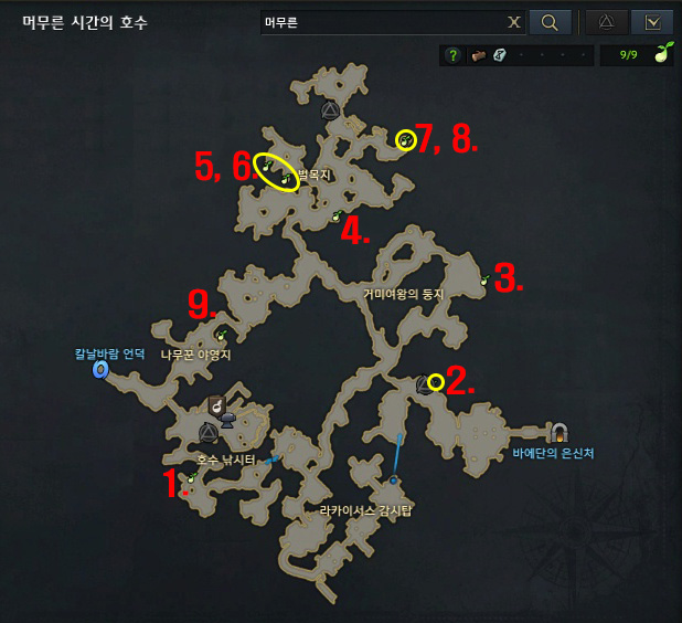 슈샤이어 세 번째 맵 [머무른 시간의 호수] 모코코 상세 위치