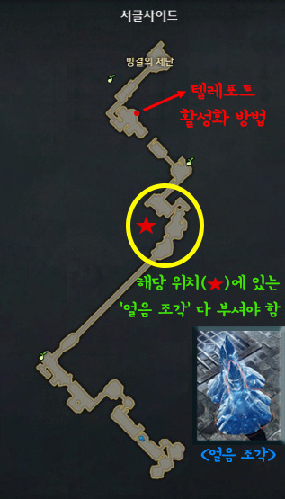위 노란색 원이 있는 곳의 얼음 조각을 다 부시고