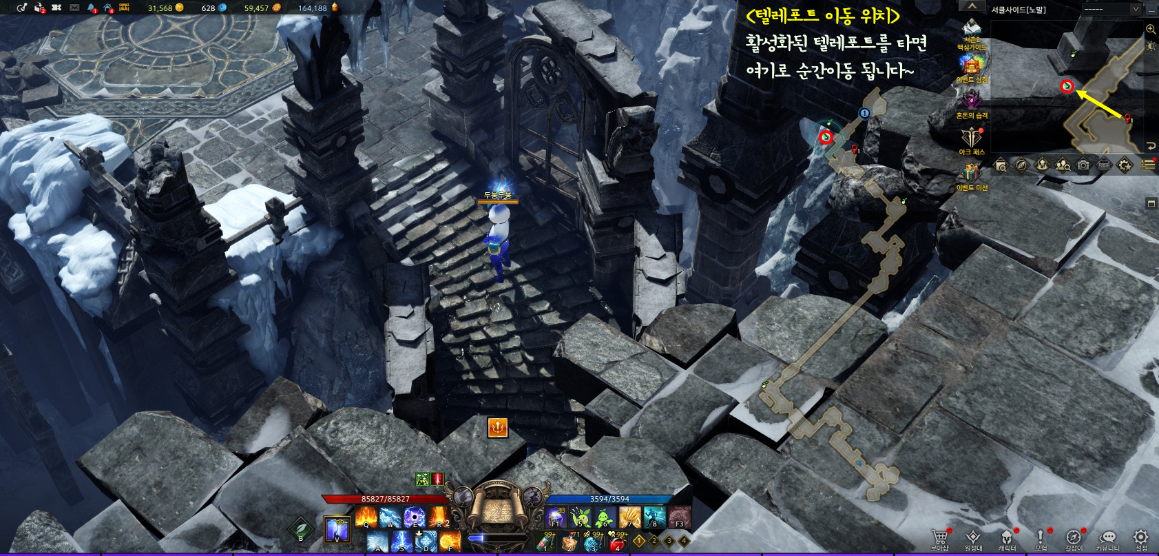 텔레포트 위치에서 화살표 방향으로 이동하면