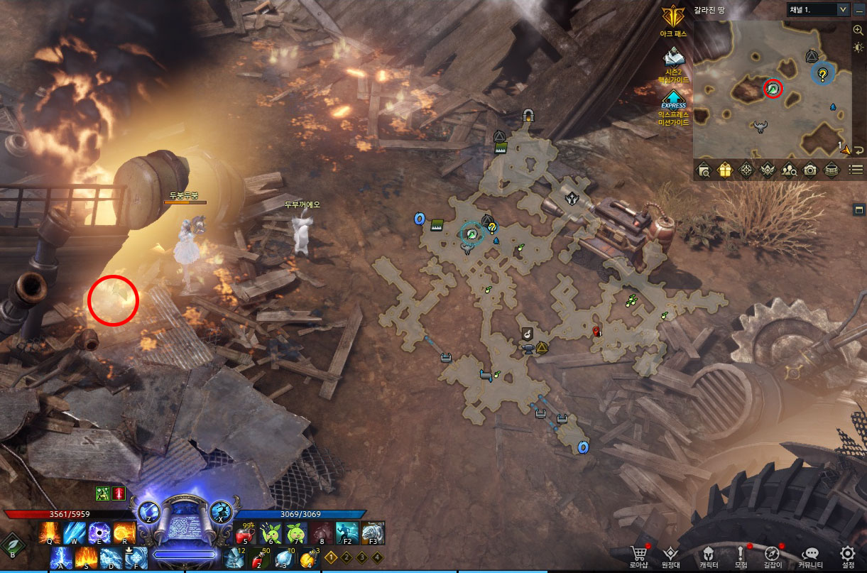 아르데타인 세 번째 맵 [갈라진 땅] 모코코 위치